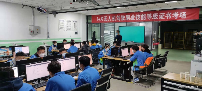 2022年11月20日,无人机驾驶员1+X职业技能等级证书(中级)考试在智能网联与新能源实训中心进行。