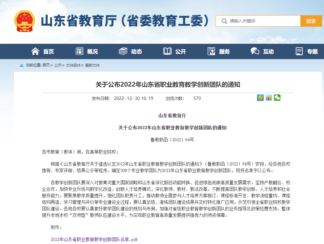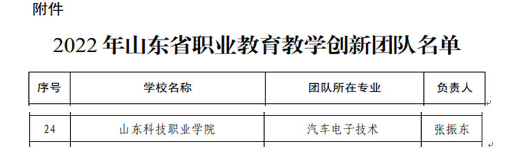 近日,省教育厅发布了《关于公布2022年山东省职业教育教学创新团队的通知》(鲁教职函〔2022〕64号),bw必威西汉姆联汽车电子技术专业教育教学创新团队获批立项。