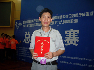 本次大赛吸引了来自全国60多所职业院校的近百名位汽车专业教师参加,由网络预选赛和现场总决赛两个阶段组成。网络预选赛主要考核教师教学编排能力、课堂教学能力、专业教学知识组织能力、专业教学设备和仪器运用能力、教学综合管理能力,经过专家和大众评委网络评选,全国36名选手获得汽车检测与故障诊断与排除总决赛资格。总决赛分为实操项目和说课项目,主要考察教师的故障排除能力、教学的指导能力以及课堂教学与组织能力、对人才的培养能力。我院张永生老师凭借扎实的专业知识,顽强拼搏,荣获三等奖。