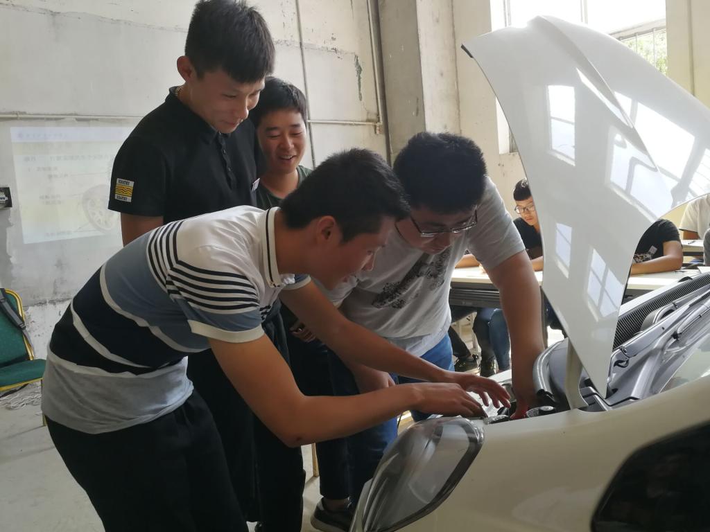 校内汽车认知实训由张相坤老师全程指导,让学生对汽车有一个整体的了解和认识,破除对汽车的神秘感; 能够对发动机、底盘、车身、电气四大系统的组成、结构特点及其位置关系有初步认识。