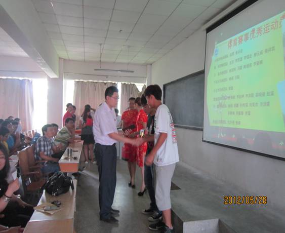5月28日,汽车工程学院在A302教室隆重举行11--12学年第二学期体育赛事颁奖典礼。汽车工程学院院长张振东、学生科科长王帅、教学科科长李剑钊及全体指导老师、辅导员出席了本次颁奖典礼。