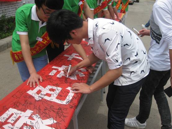 6月8日中午,绿色动力志愿者协会在学院餐厅西门口举行 “绿色动力,节能减排,从我做起”主题签字活动,借此宣传节能减排和环保知识。