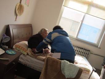 志愿者为老年人整理衣物