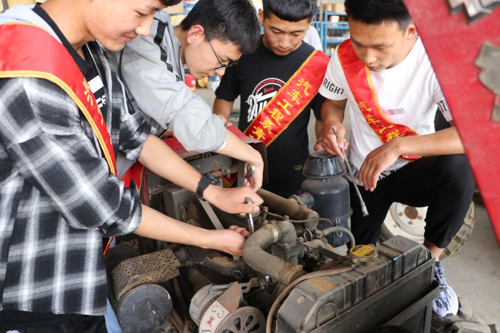 志愿者对农机设备进行诊断维修