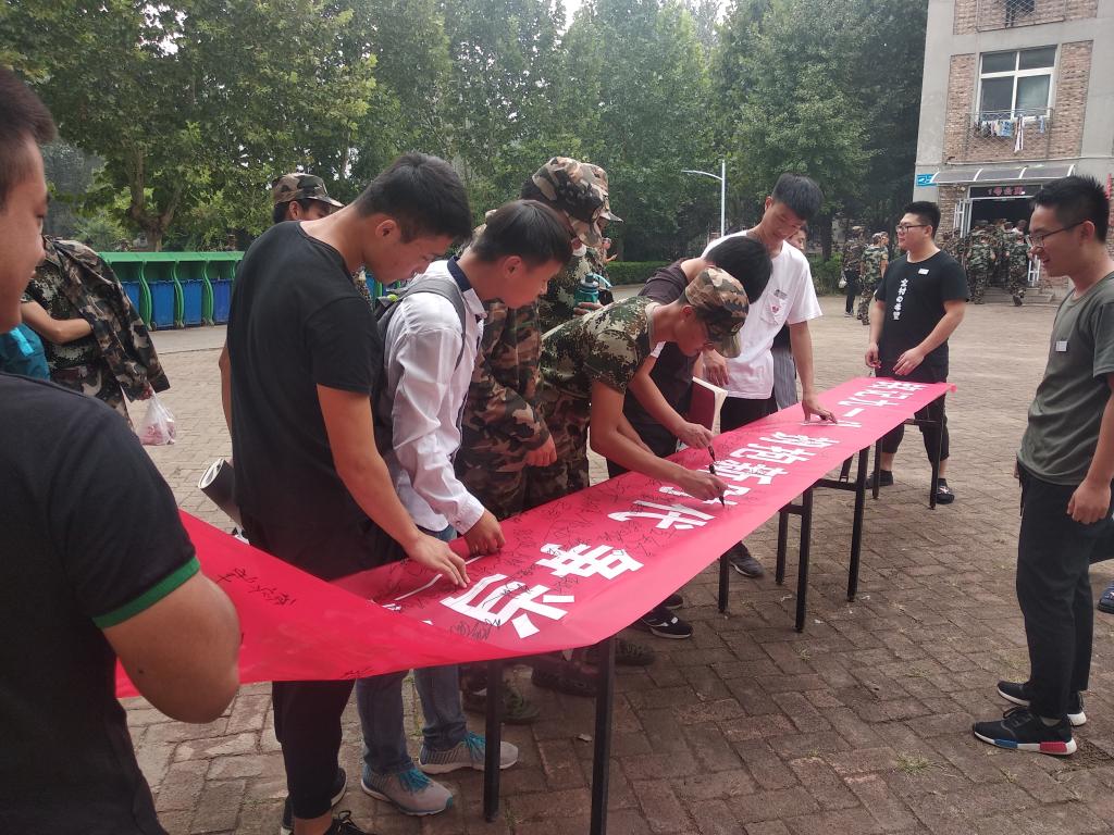 同学们以宿舍为单位,通过朗诵、查阅相关文献等方式,重温历史。在二号公寓门口,同学们又自发组织了签名活动,在印有“铭记九一八,拥抱新时代,争当新青年” 的条幅上郑重地签上了自己的名字,理性表达爱国之情和报国之志。