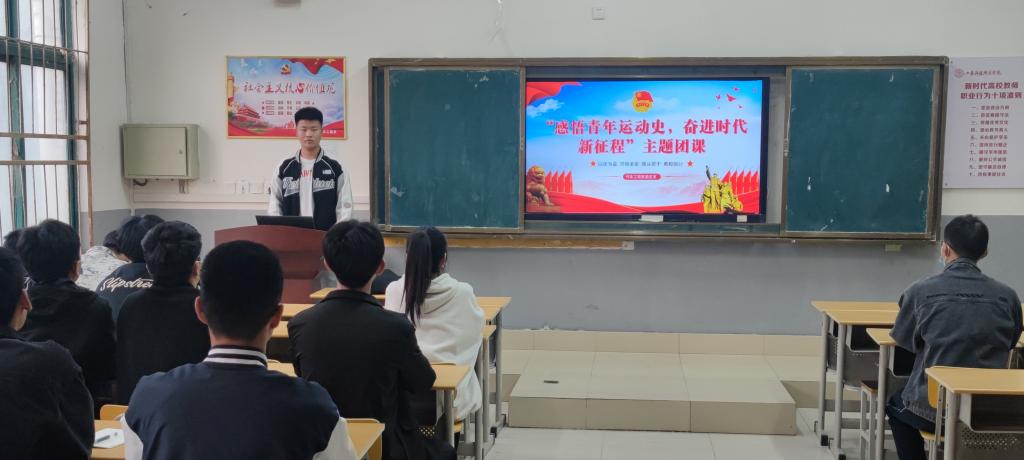 团课主要围绕“中国共产党领导广大青年在不同历史时期的奋斗史”“习近平总书记关于青年工作的重要思想”和“党的青年运动史的启示”三个方面进行了学习和交流。带领同学们系统了解了共青团诞生、发展和壮大的历史进程,了解了中国有志青年们在五四运动中积极投身到群众斗争中去的奋斗史。最后结合自身实际围绕“党的青年运动史的启示”展开讨论,同学们纷纷表示要以身作则、传递正能量,争做社会主义核心价值观的坚定信仰者、积极传播者、模范践行者,成为一名有理想、有本领、有担当的优秀共青团员。