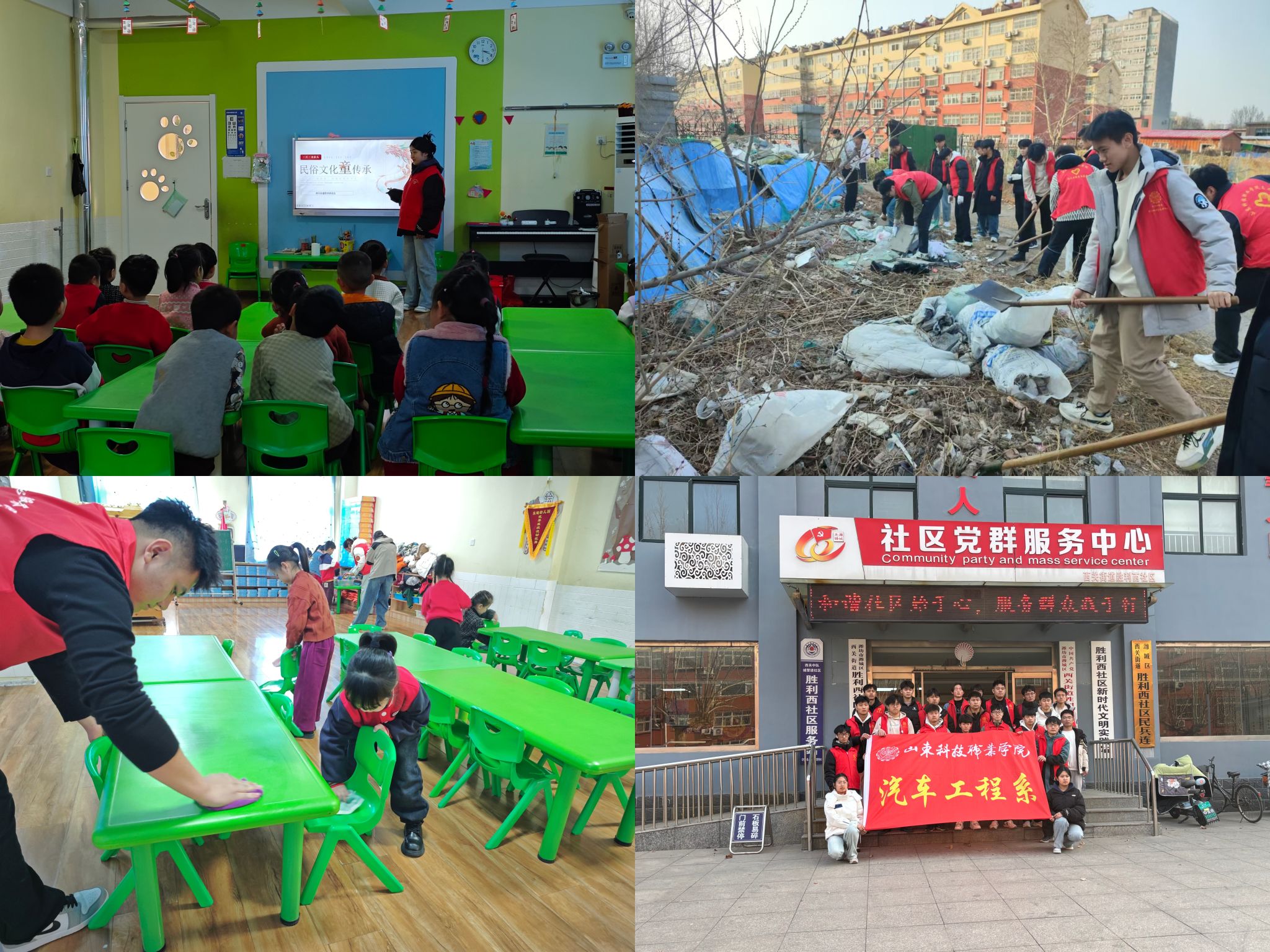 在乐迪幼儿园,志愿者们为小朋友们带来了一场别开生面的民俗文化盛宴。通过生动有趣的故事、精美的图片和互动游戏,让孩子们在欢乐中感受中华传统文化的魅力。同时,志愿者们还讲述了雷锋的故事,用雷锋的事迹激励小朋友们从小树立乐于助人、奉献社会的良好品德。随后,志愿者们身体力行,与小朋友们一起整理教室,在大家的共同努力下,教室变得整洁有序,充满温馨。在胜利西社区,开展社区环境美化活动。他们手持清洁工具,用实际行动为社区居民创造了一个干净、整洁的生活环境。