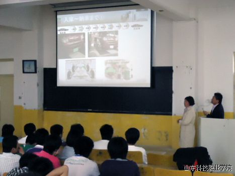 浦泽社长首先介绍了世界最先进的汽修设备,也是司比迪商社的主导产品——汽车底盘校正仪,该设备能够对严重碰撞的事故车的车架进行快速而精确地整形,误差小于1毫米。他还介绍了日本事故车维修整形的工作流程,日本汽车企业人才联合培养模式,以及高级汽车维修技师在日本的发展前景等学生们关系的问题,并欢迎日语过关、技术过硬的我院毕业生到日本公司工作。在讲座最后的互动环节,同学们踊跃提问,浦泽澄一一作了回答。