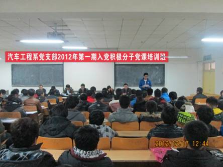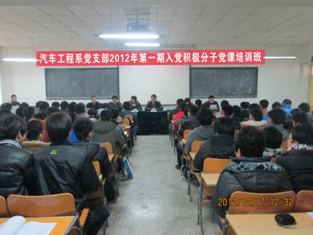 12月17日中午,在全院深入学习宣传、贯彻落实党的十八大精神之际,必威BETWAY西汉姆联党支部在博学楼A302教室举办了2012年入党积极分子党课培训班。必威BETWAY西汉姆联党支部全体党员、部分指导教师、2011、2012级入党积极分子共计143人参加了培训班开班仪式。
